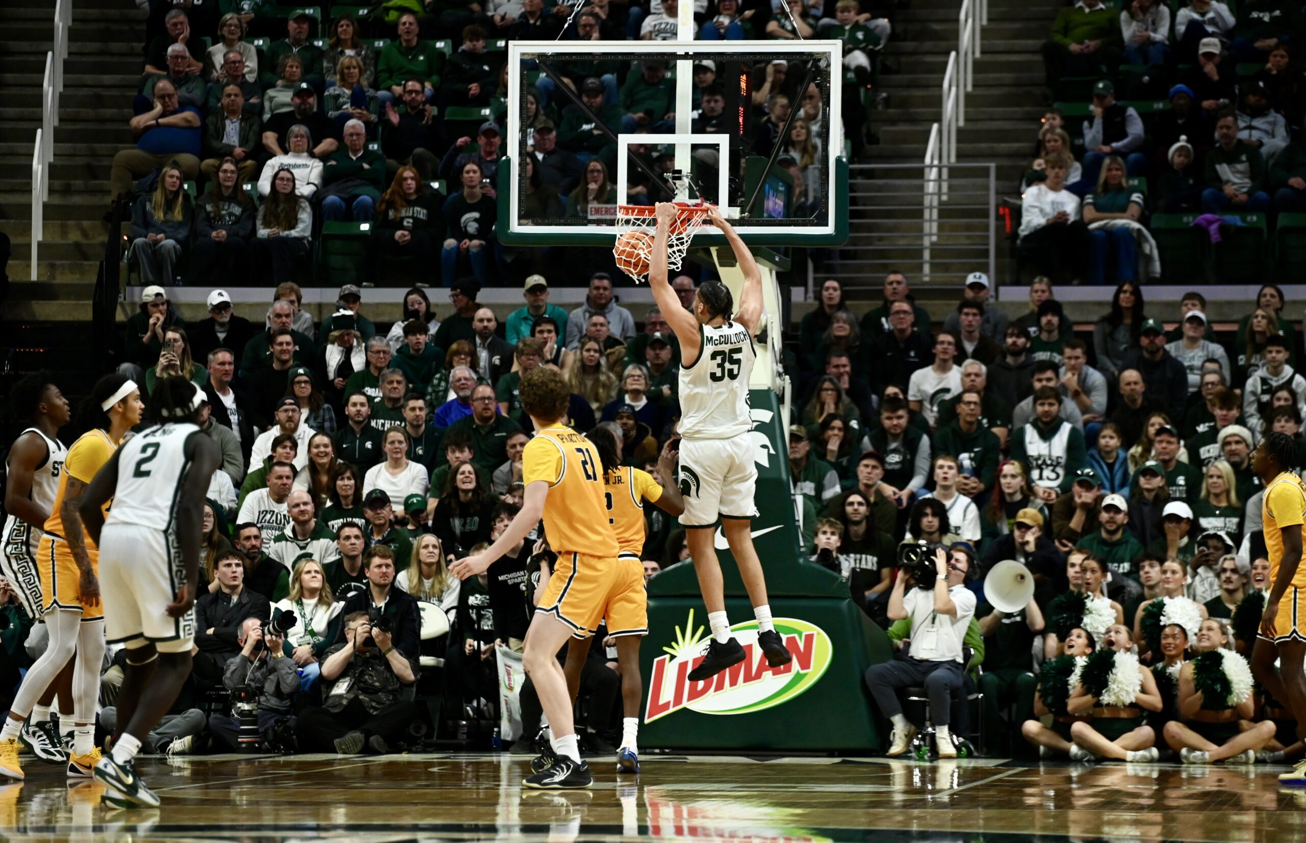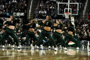 Michigan State’s dance team fires the crowd up during the first half.