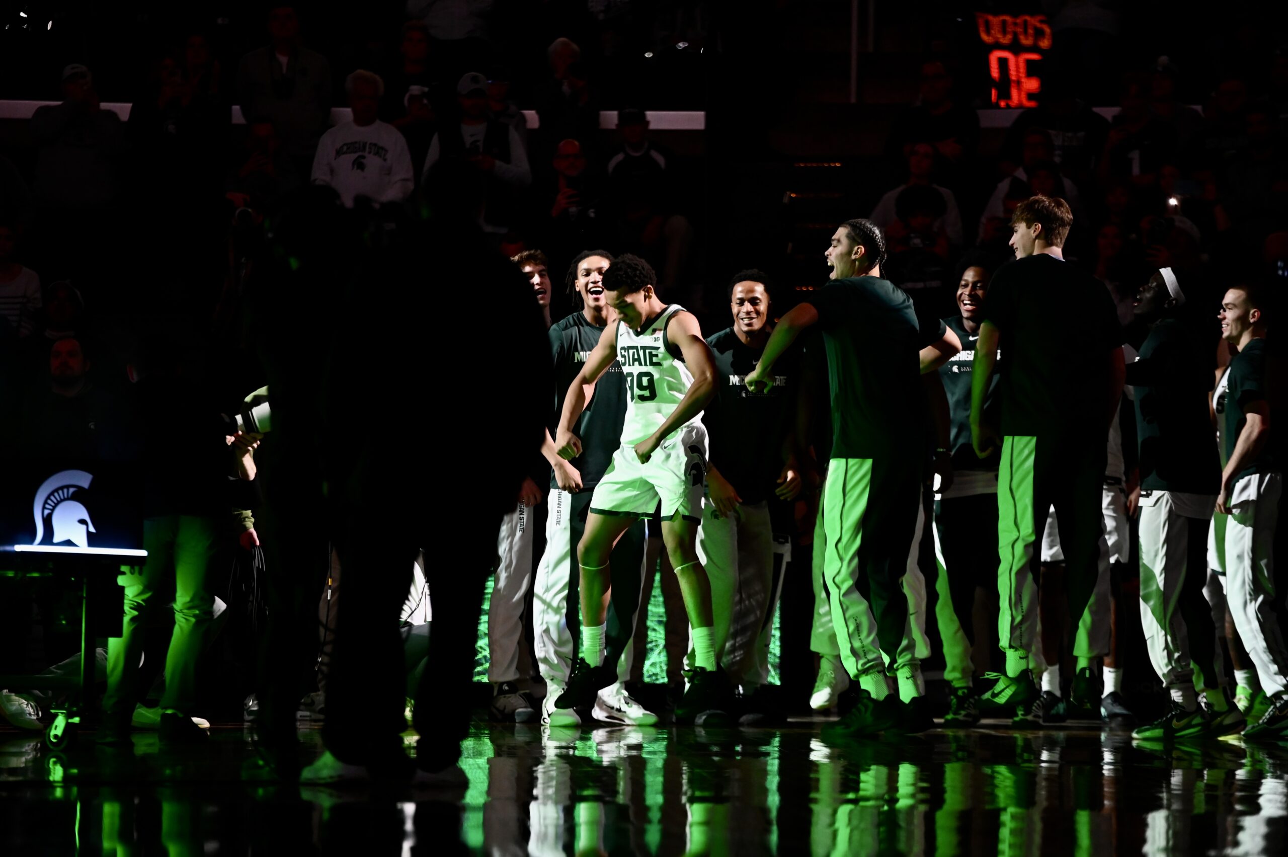Divine Ugochukwu is introduced to the Breslin Center crowd as a starter for the first time.