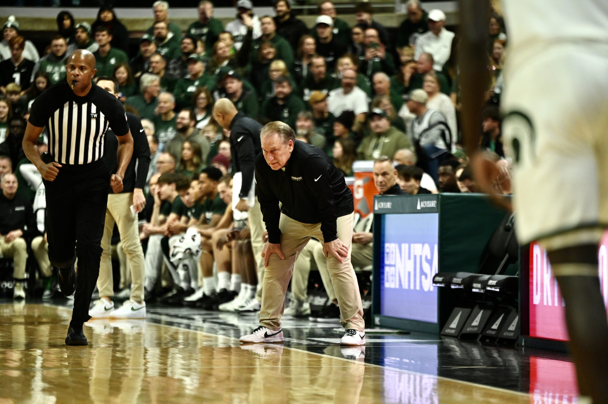 Tom Izzo watches intently during Michigan State basketball’s victory over Toledo.