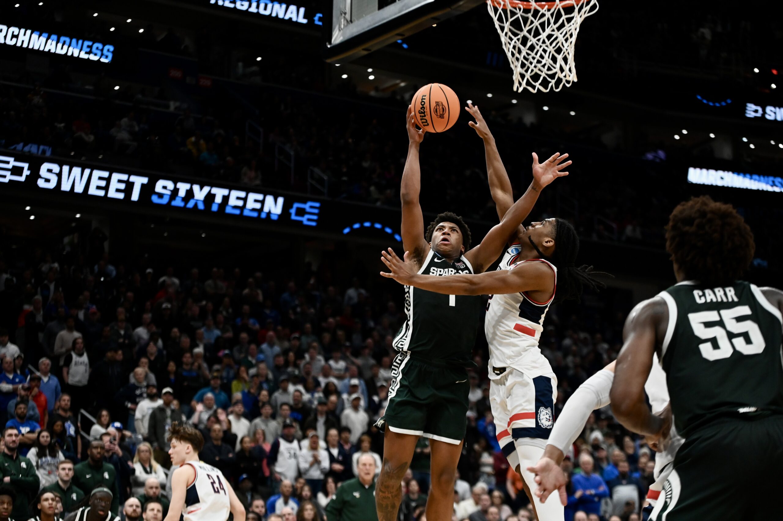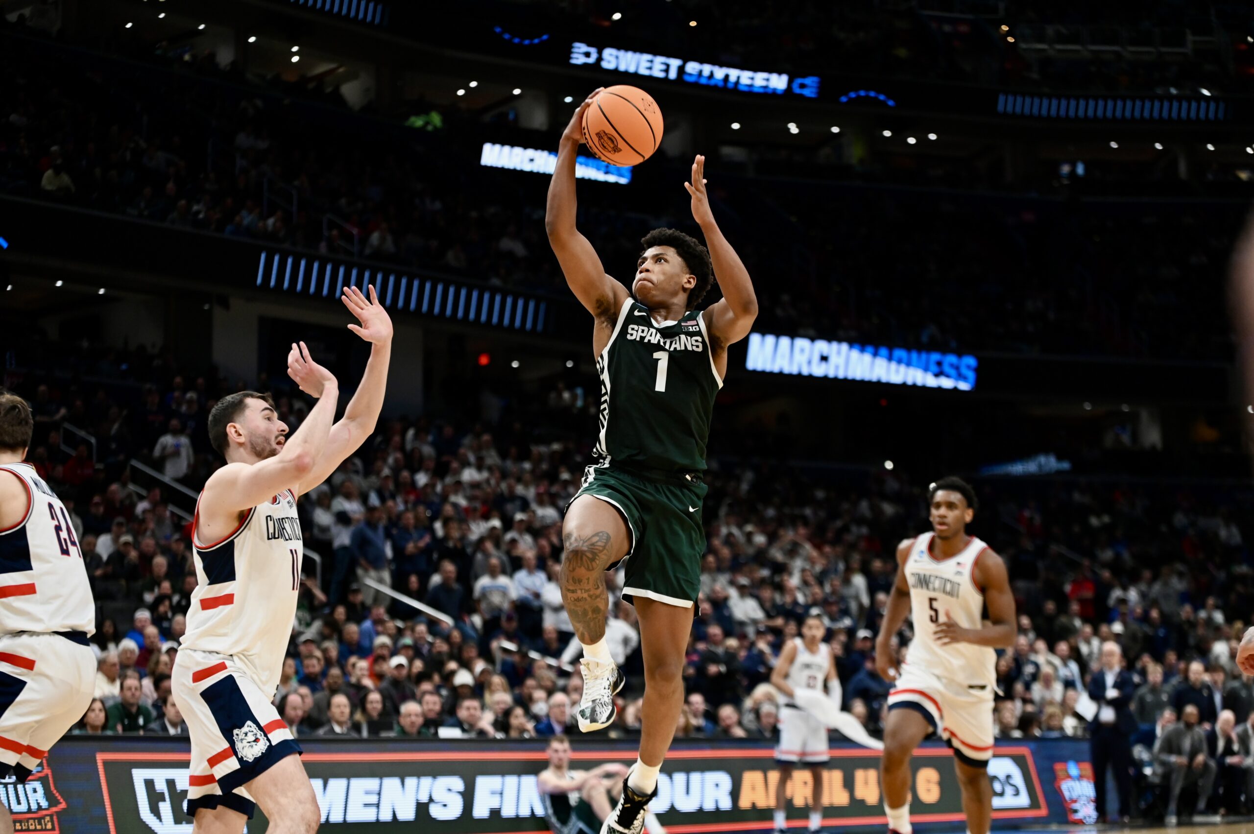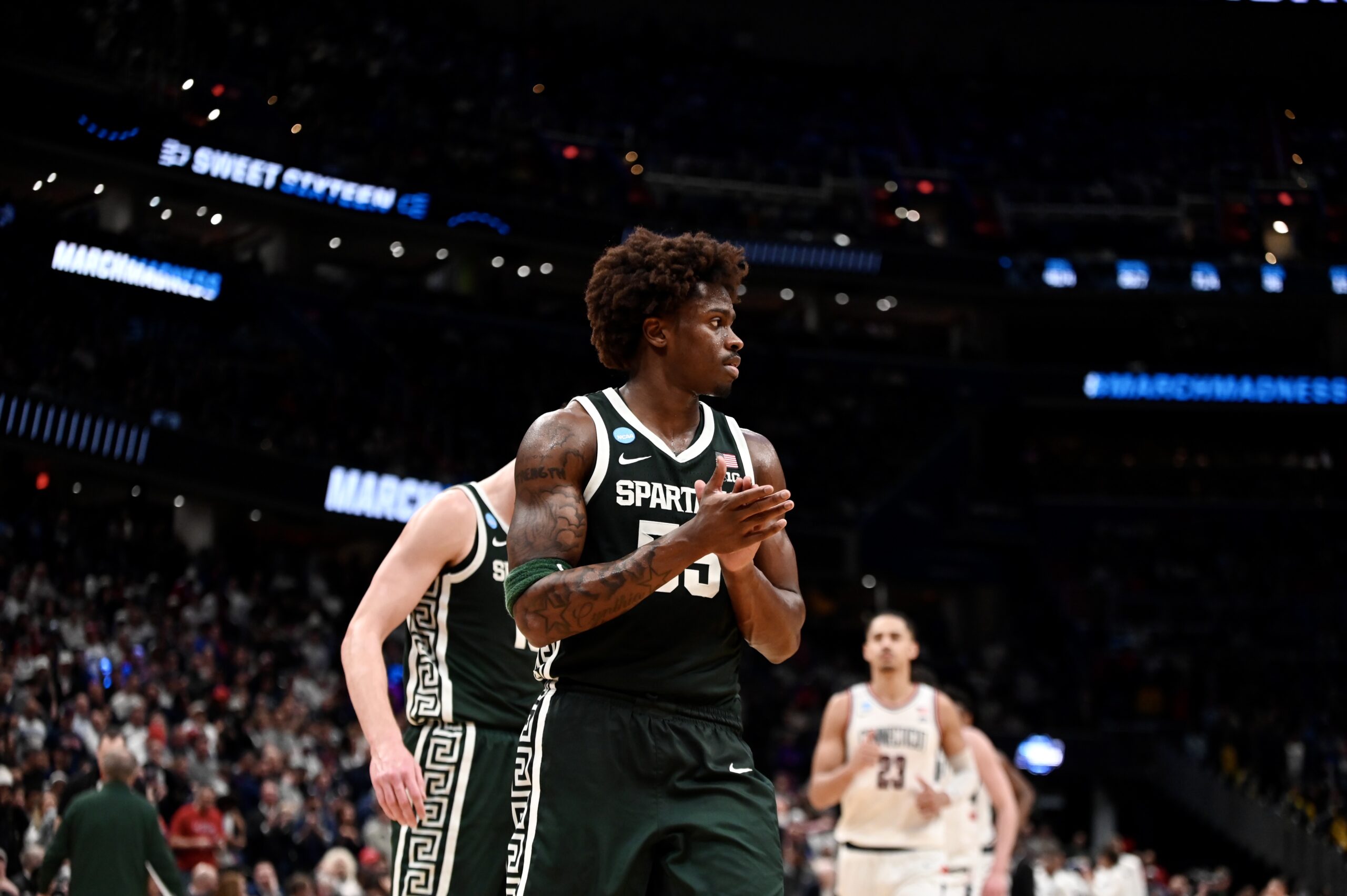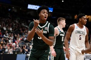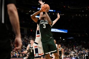 On Friday, Michigan State basketball fell to UConn in the Sweet 16. The Spartans rallied from down 19 points to lead in the second half, but ran out of gas in the end. The trip to Washington D.C. was the end of the road for the Spartans, with a long offseason beginning. This game also marked the end of the collegiate careers for Carson Cooper, Jaxon Kohler, Trey Fort III, Denham Wojcik, and Nick Sanders.