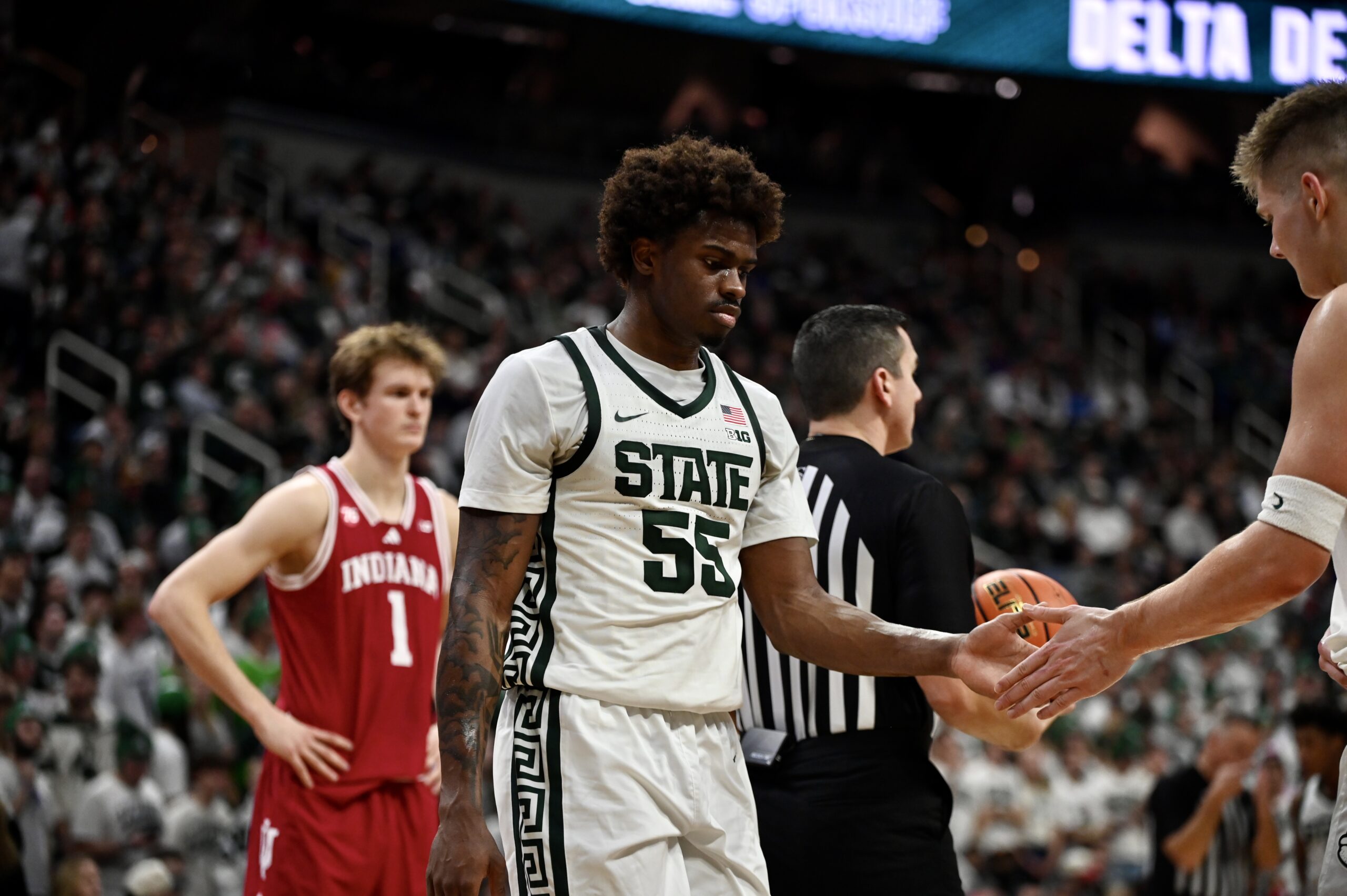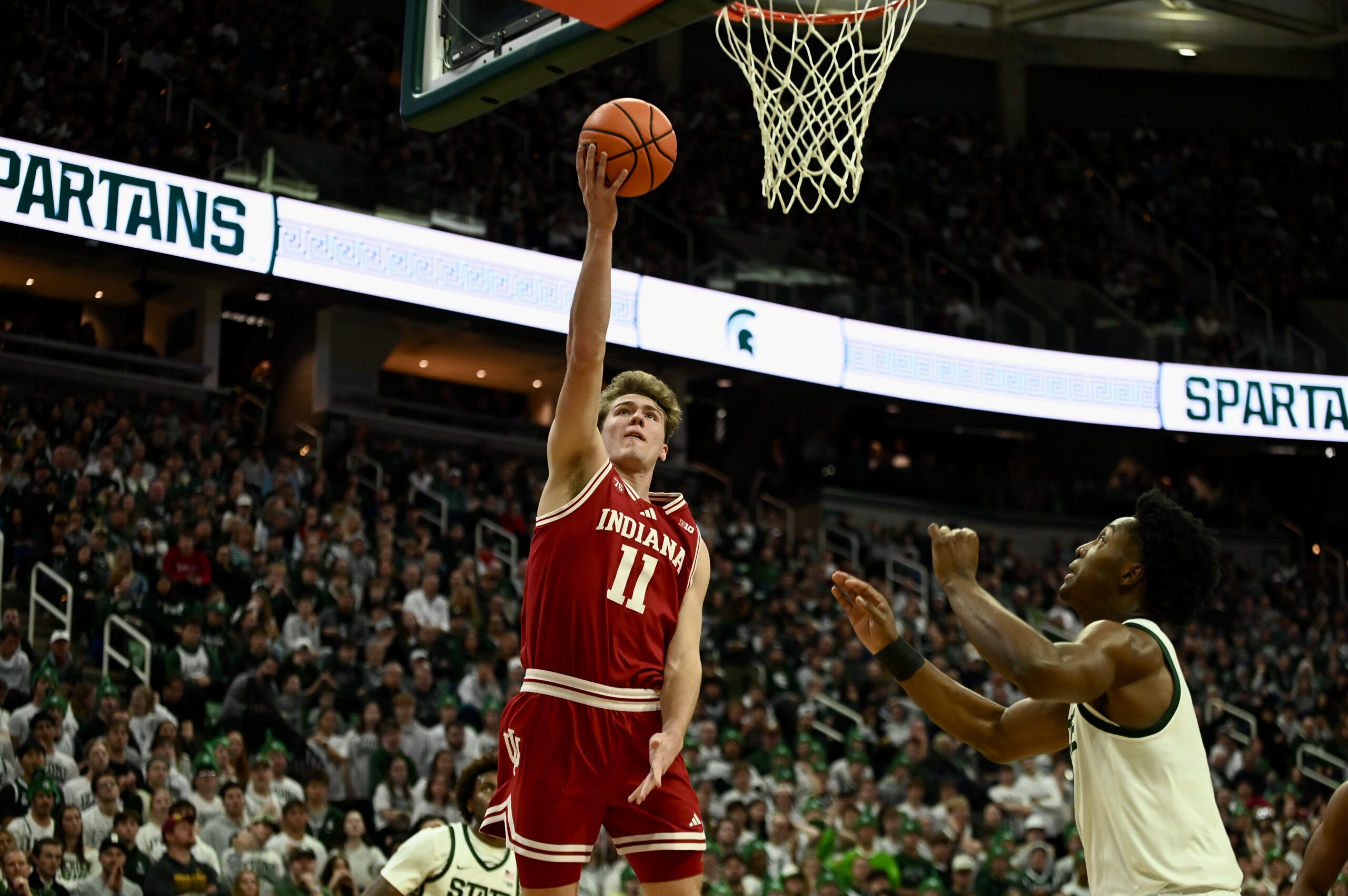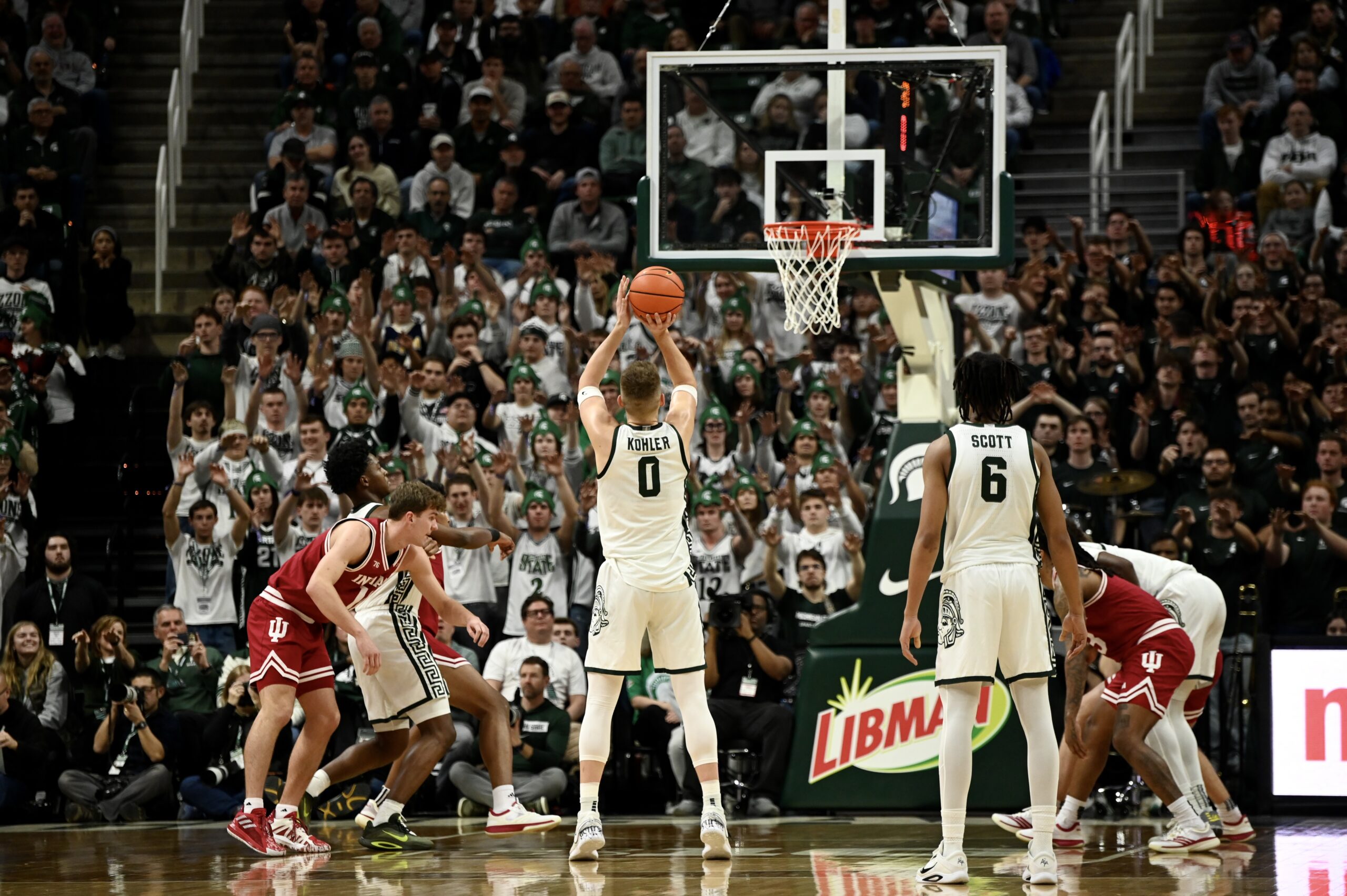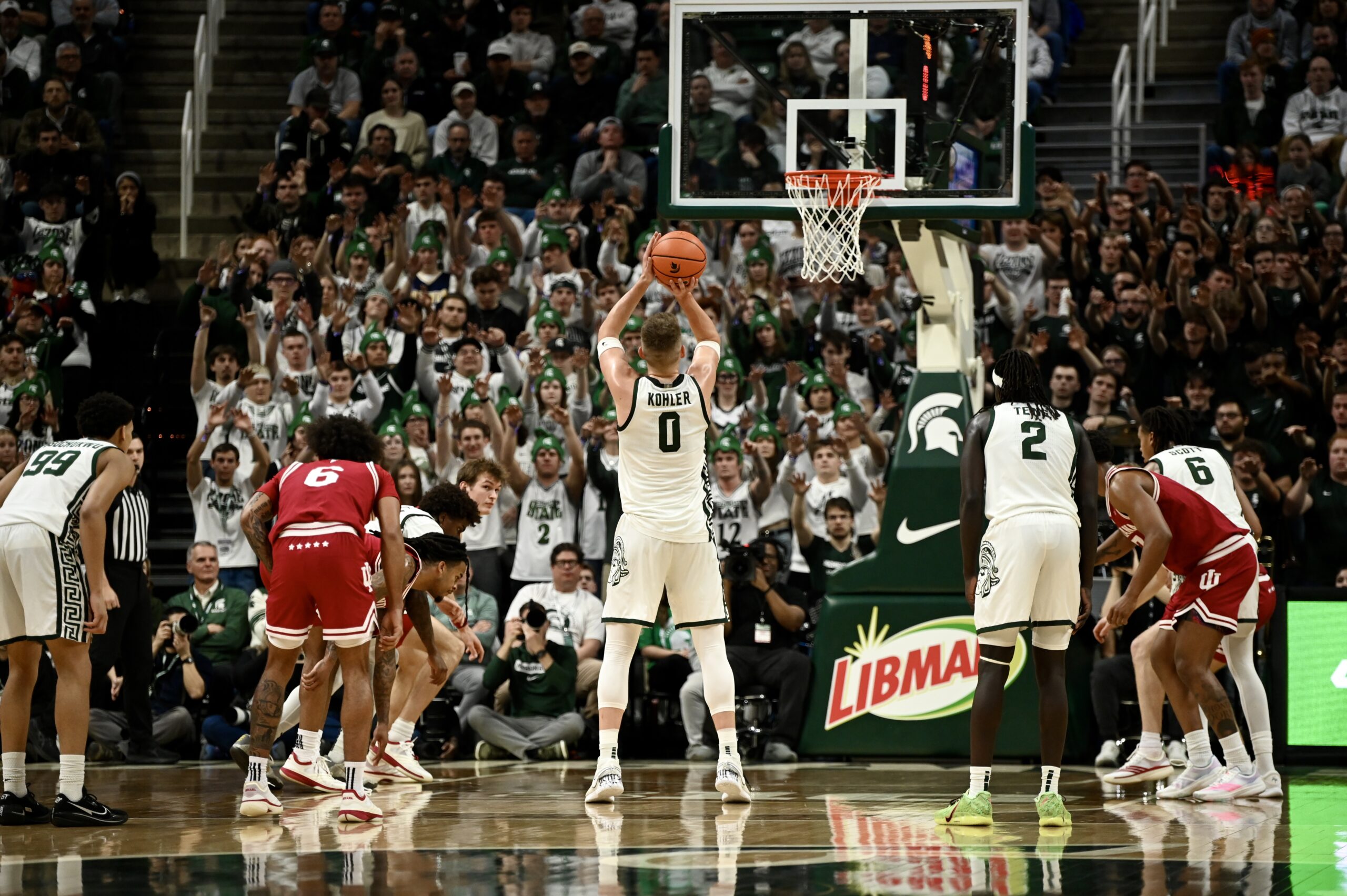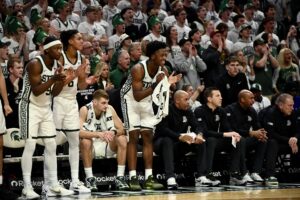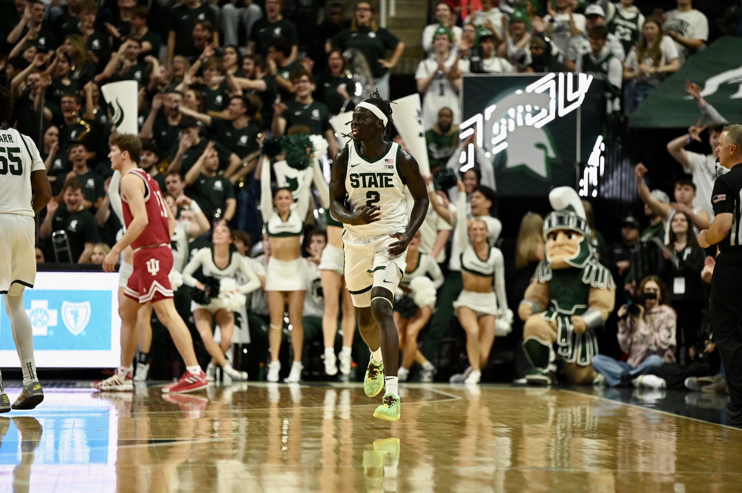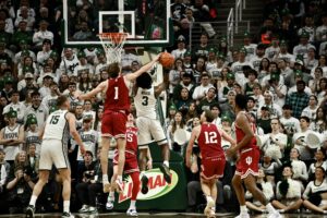 Jaxon Kohler also added his own double-double, and freshman Jordan Scott had his first game with double digit points, scoring 11. The crucial stretch for MSU came when the game was tied 53-53, as the Spartans kept Indiana off the boards for 10 minutes of game time and went on a 19-0 run, powered by Ward and Scott scoring 8 of the first 10 points in the run.