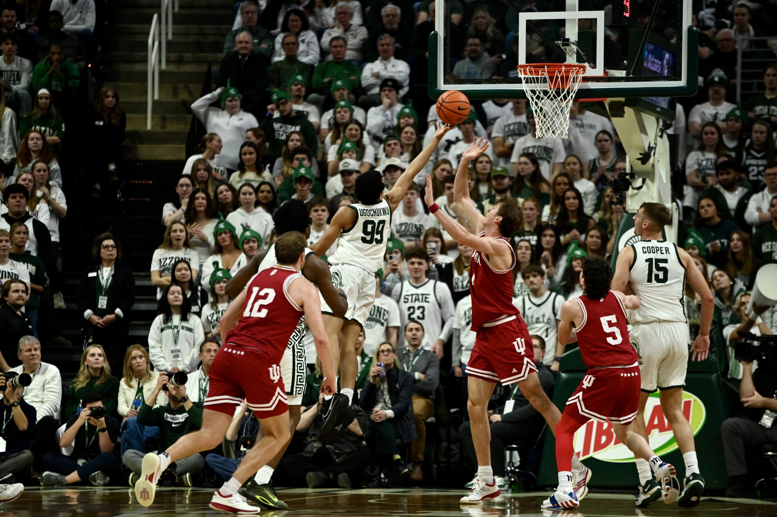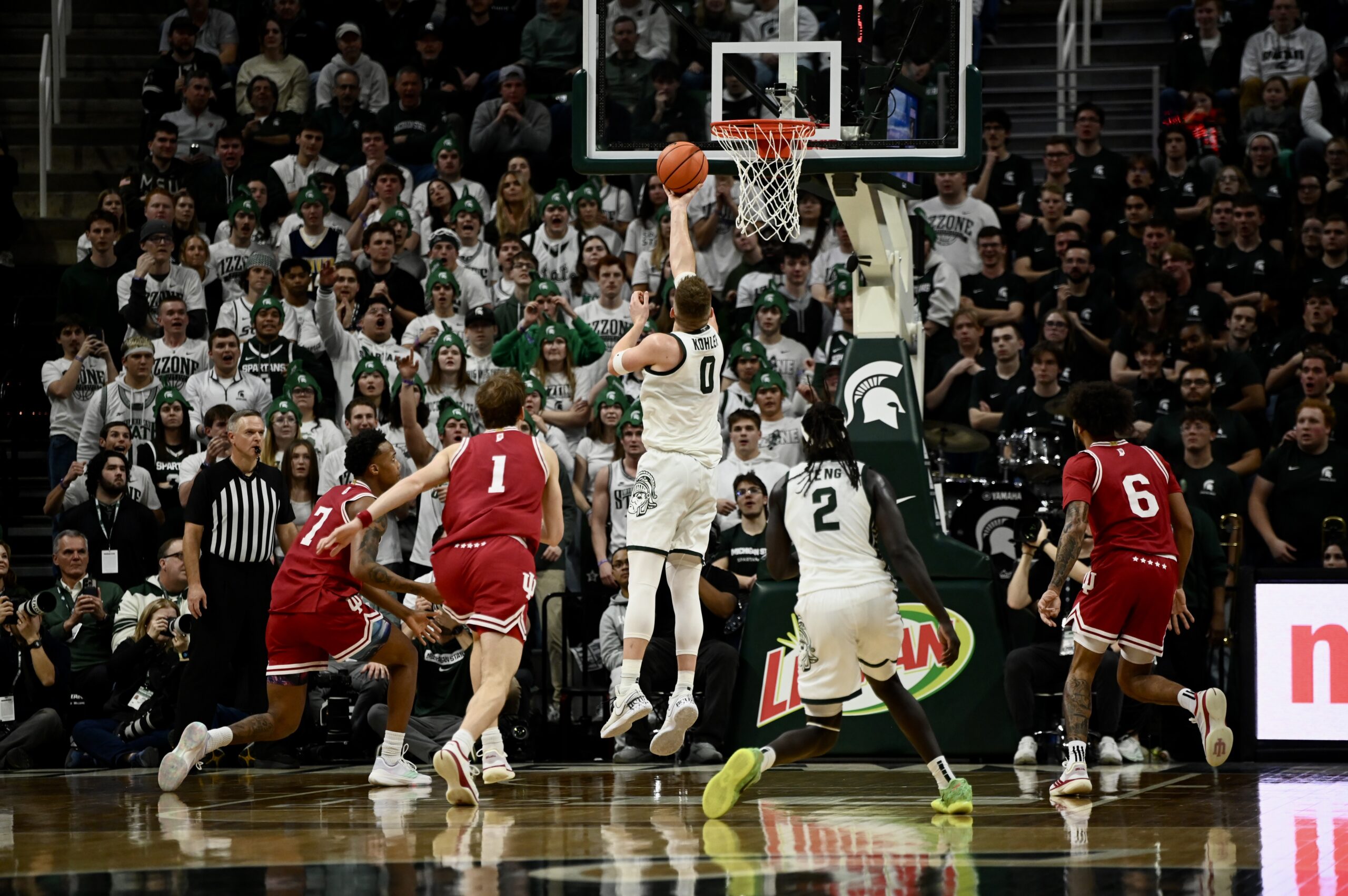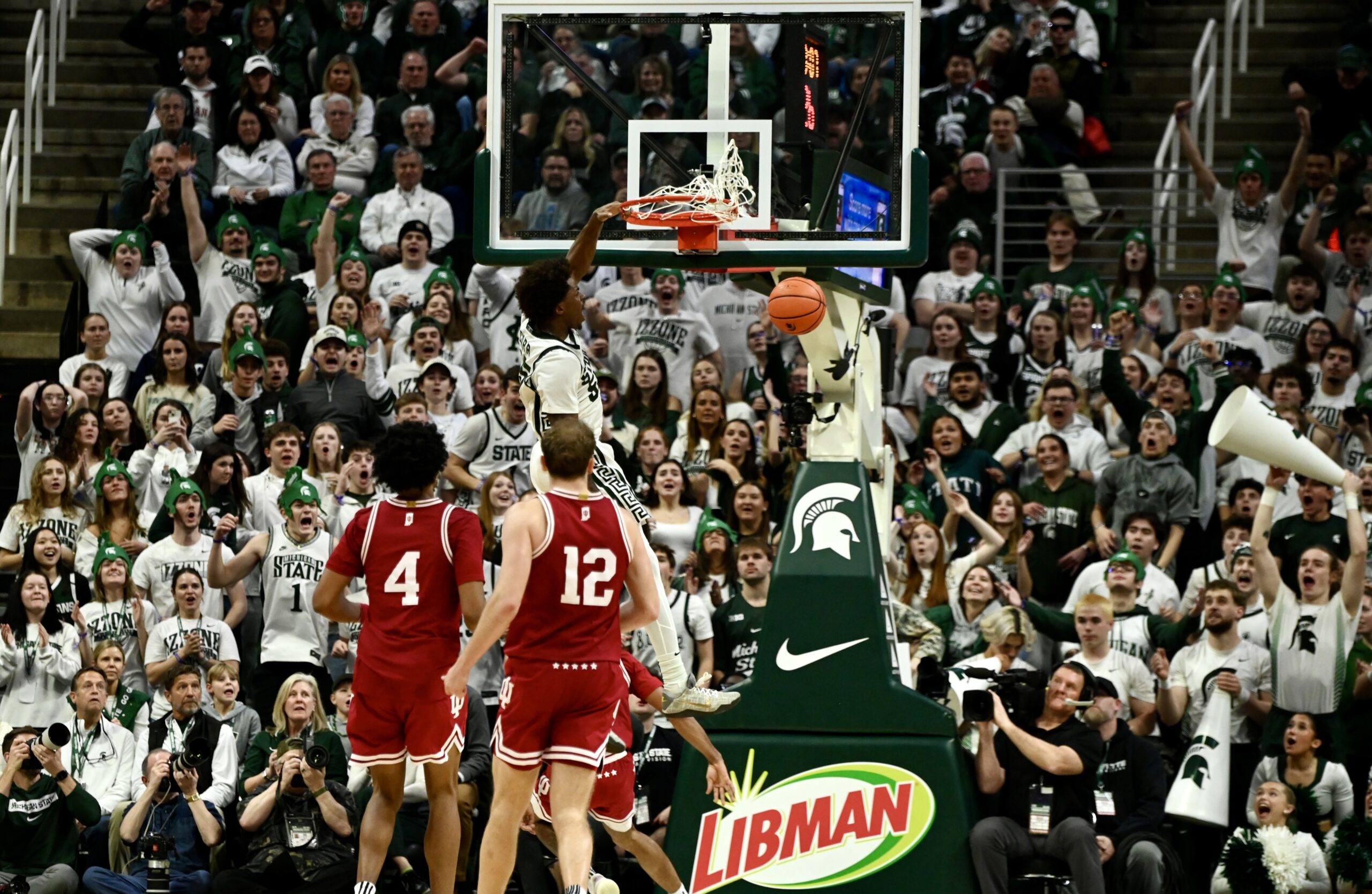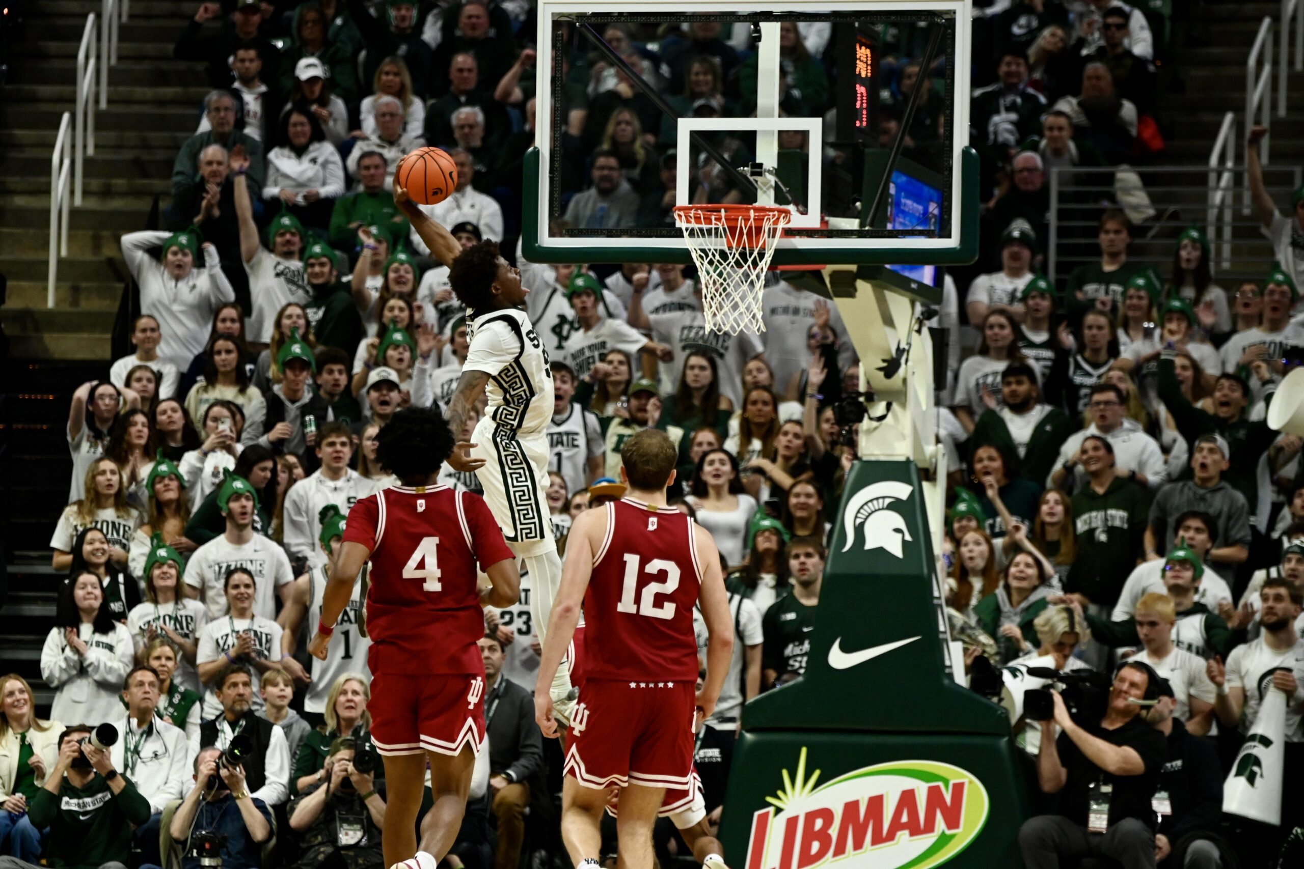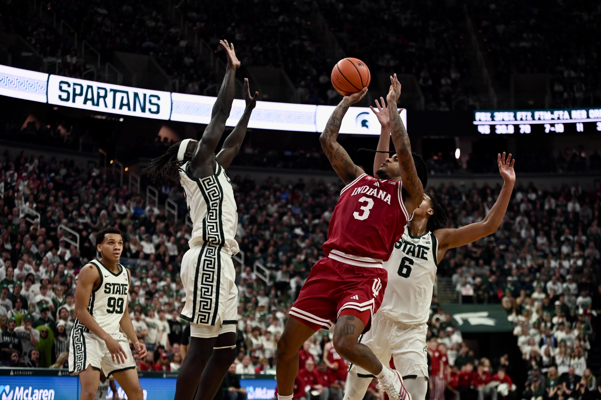 Jaxon Kohler also added his own double-double, and freshman Jordan Scott had his first game with double digit points, scoring 11. The crucial stretch for MSU came when the game was tied 53-53, as the Spartans kept Indiana off the boards for 10 minutes of game time and went on a 19-0 run, powered by Ward and Scott scoring 8 of the first 10 points in the run.