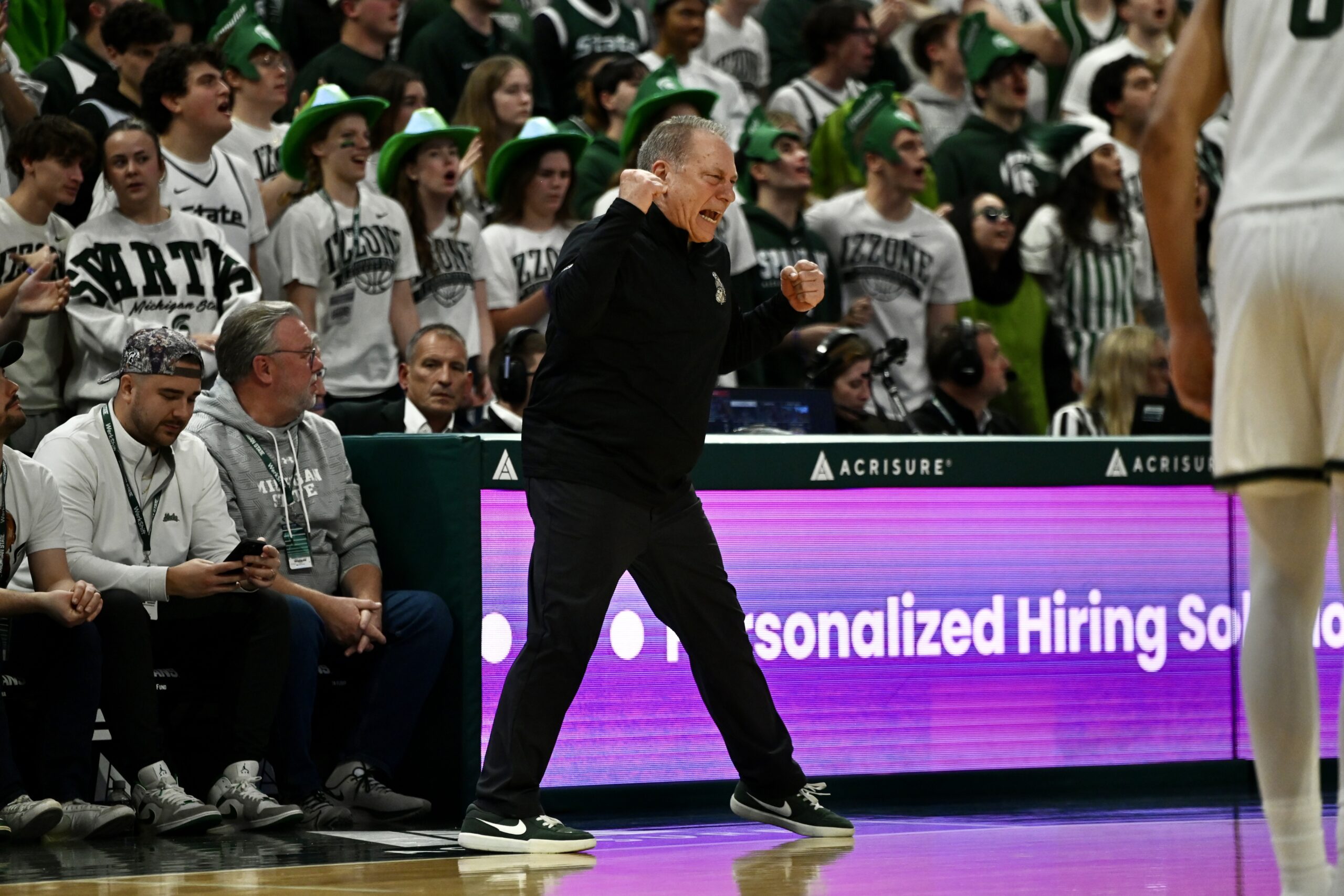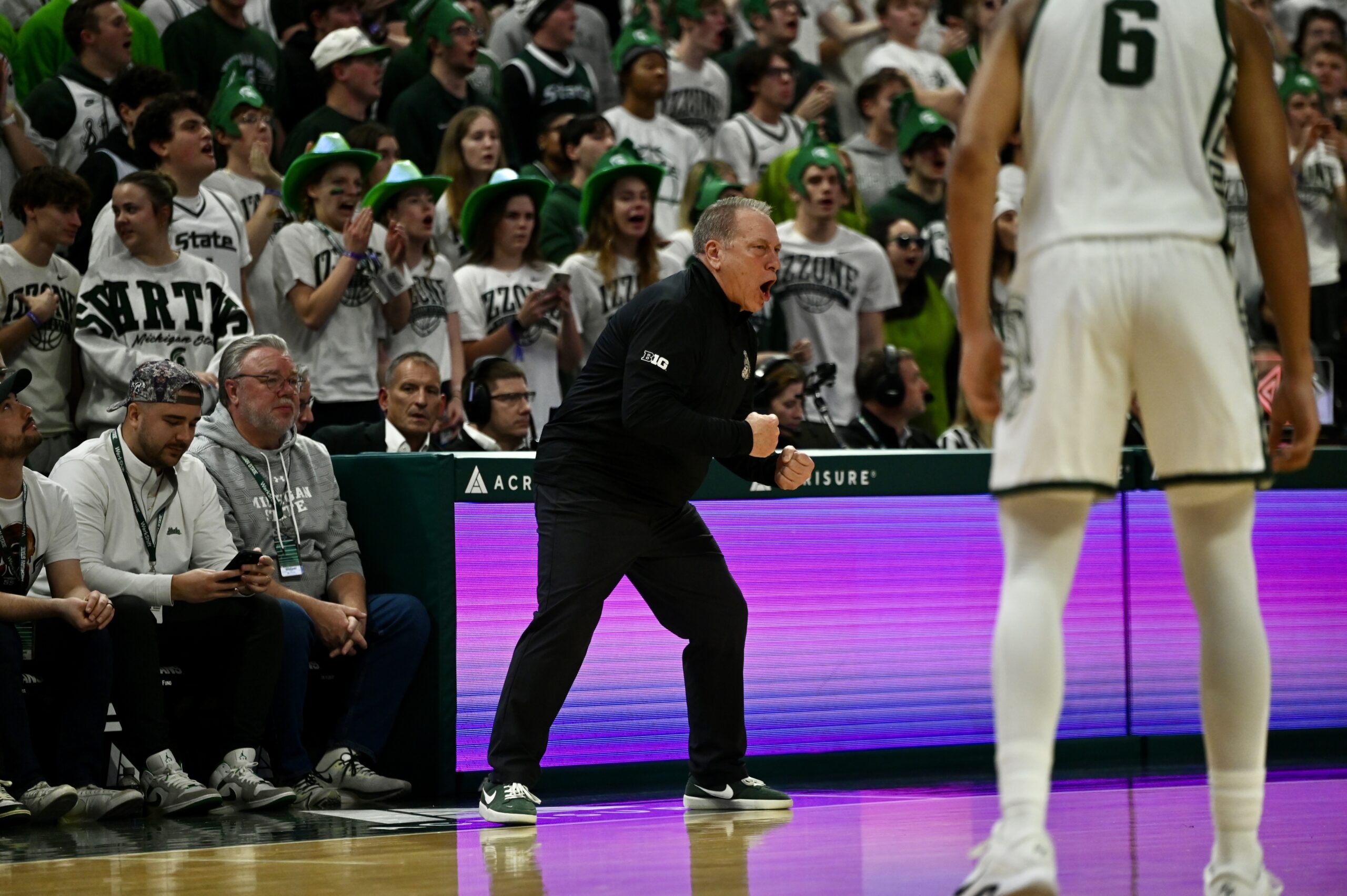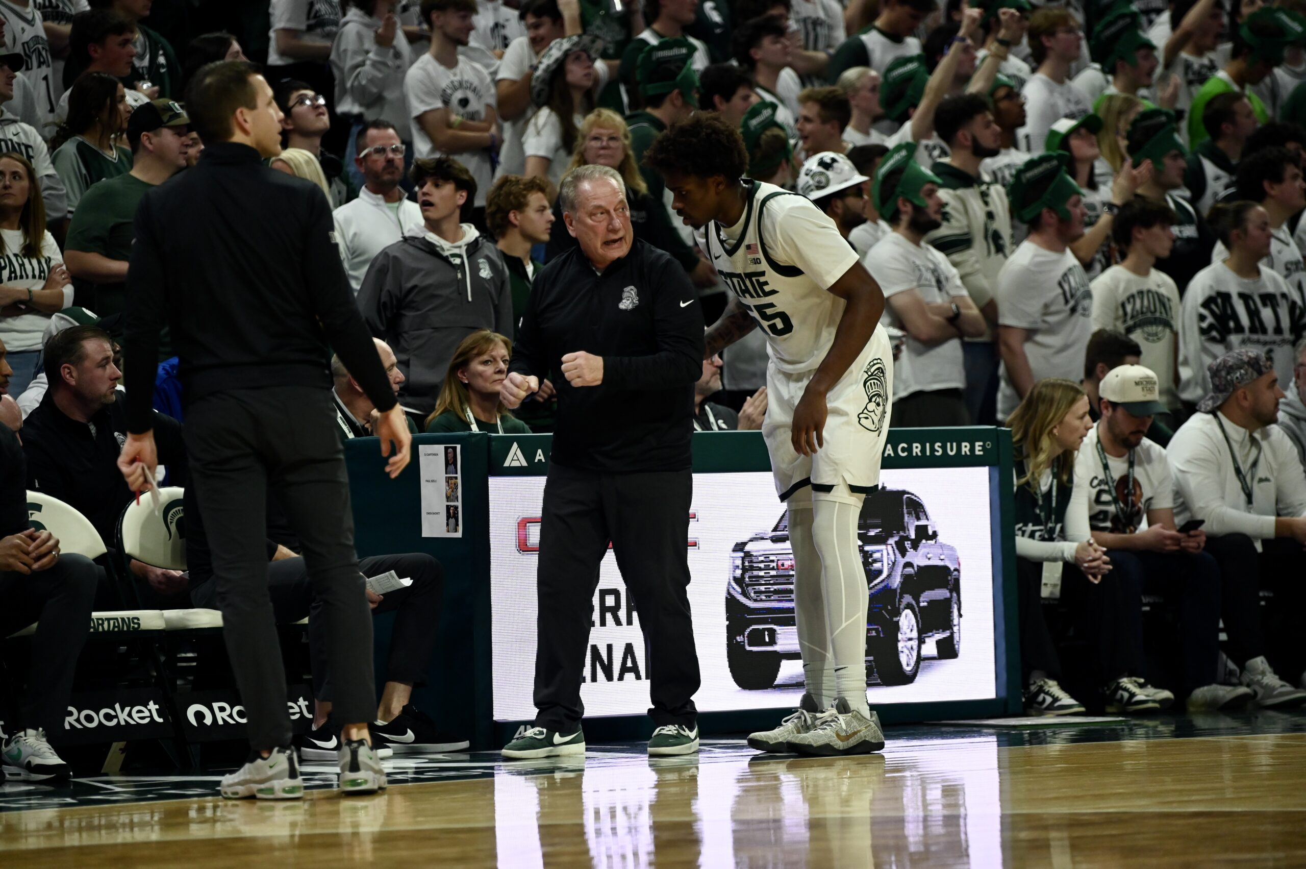 Tom Izzo shows an emotional outburst from the sidelines to fire up his team.