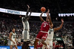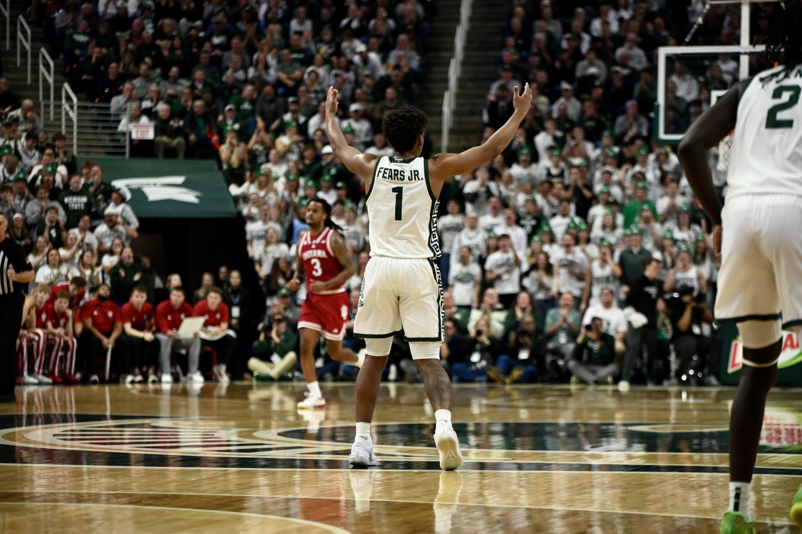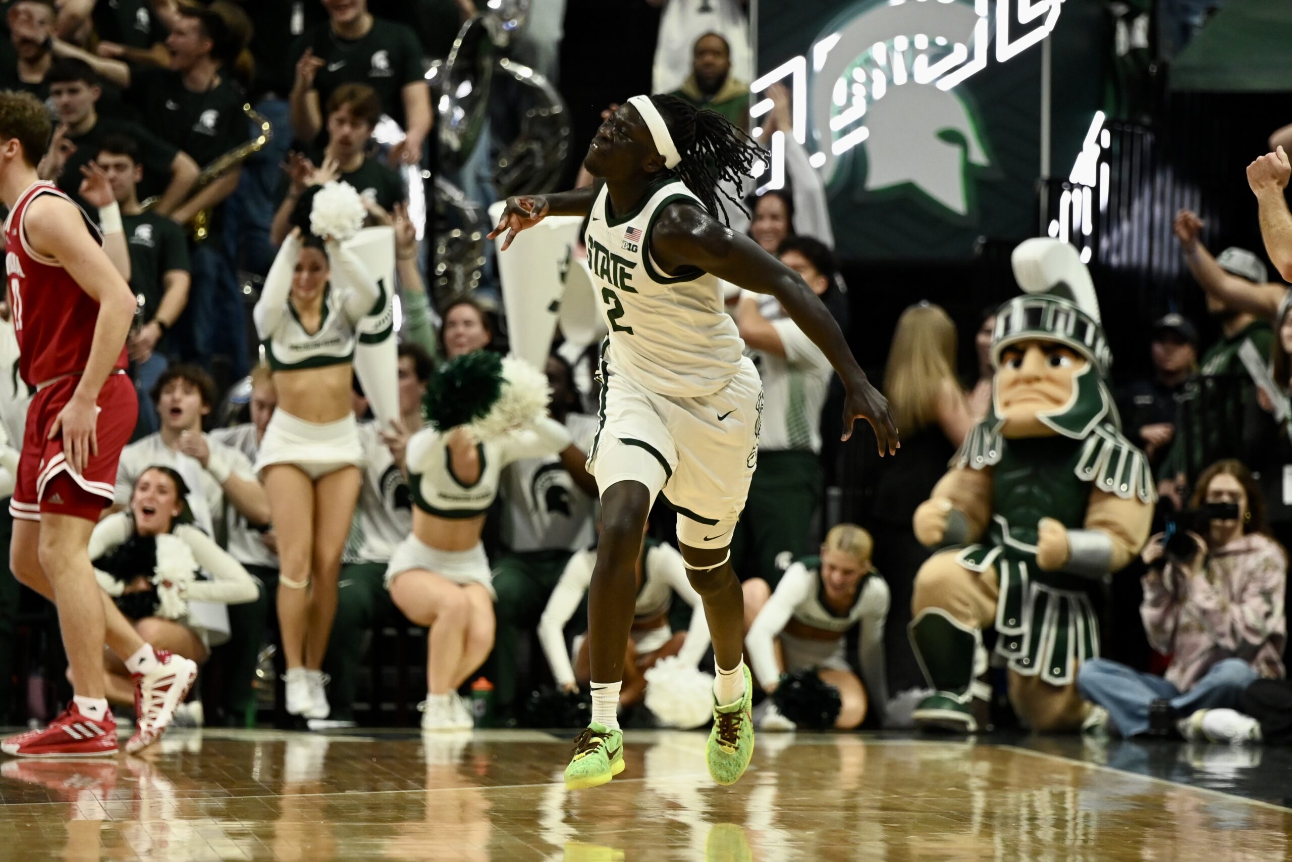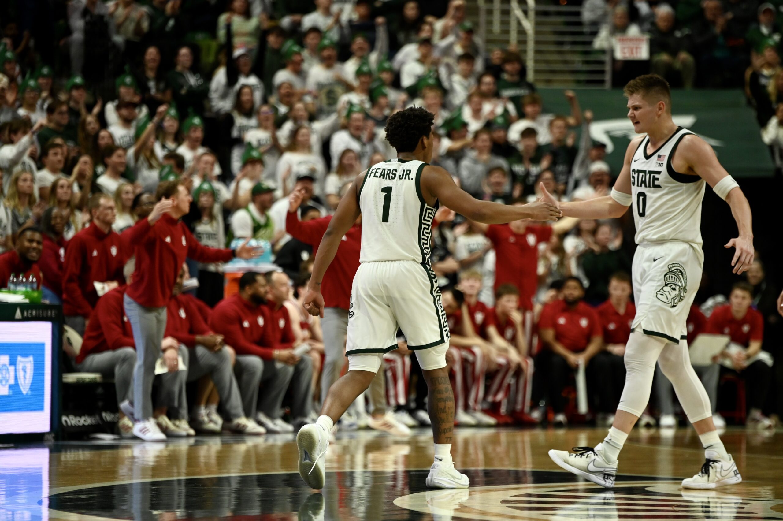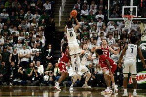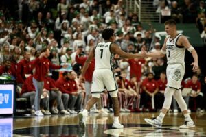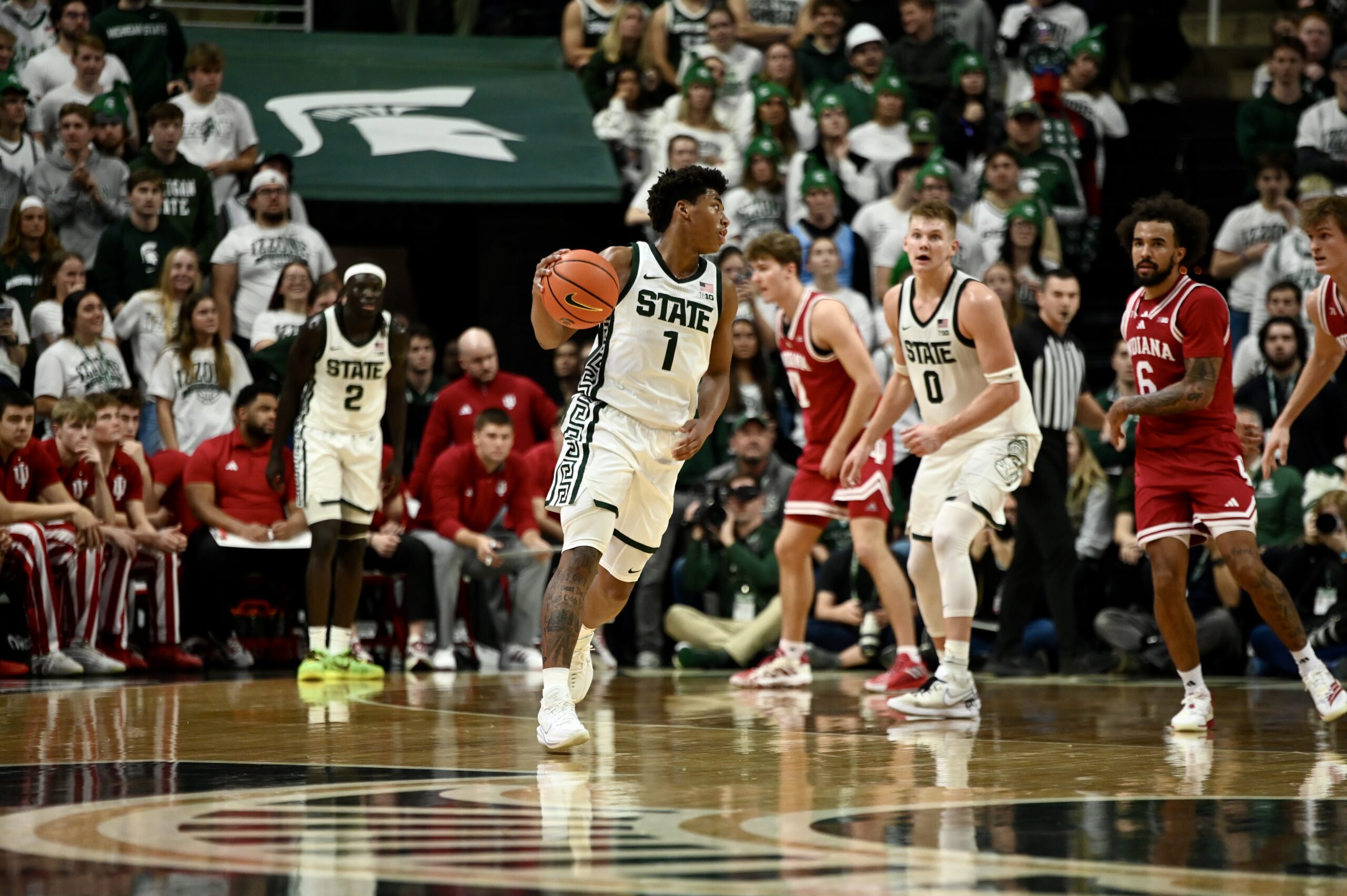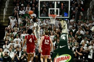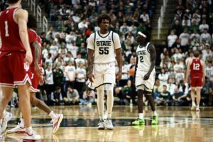 Michigan State basketball took down the Indiana Hoosiers 81-60 on Tuesday night, powered by a career-high 23 points from Jeremy Fears Jr. The Spartans needed all of the sophomore guard’s points, as he scored 17 of the first 21 points for MSU while the rest of the team started off ice cold. Then, when the rest of the team got hot, Fears became the facilitator of the offense, with 10 assists on the night to give him a double-double.