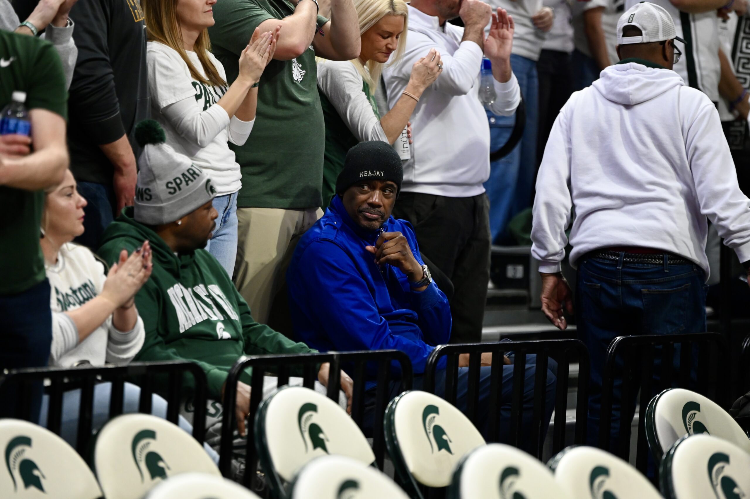 Jay Vincent (in blue) sits in the crowd. Vincent was a critical member of Michigan State basketball’s 1979 championship team.
