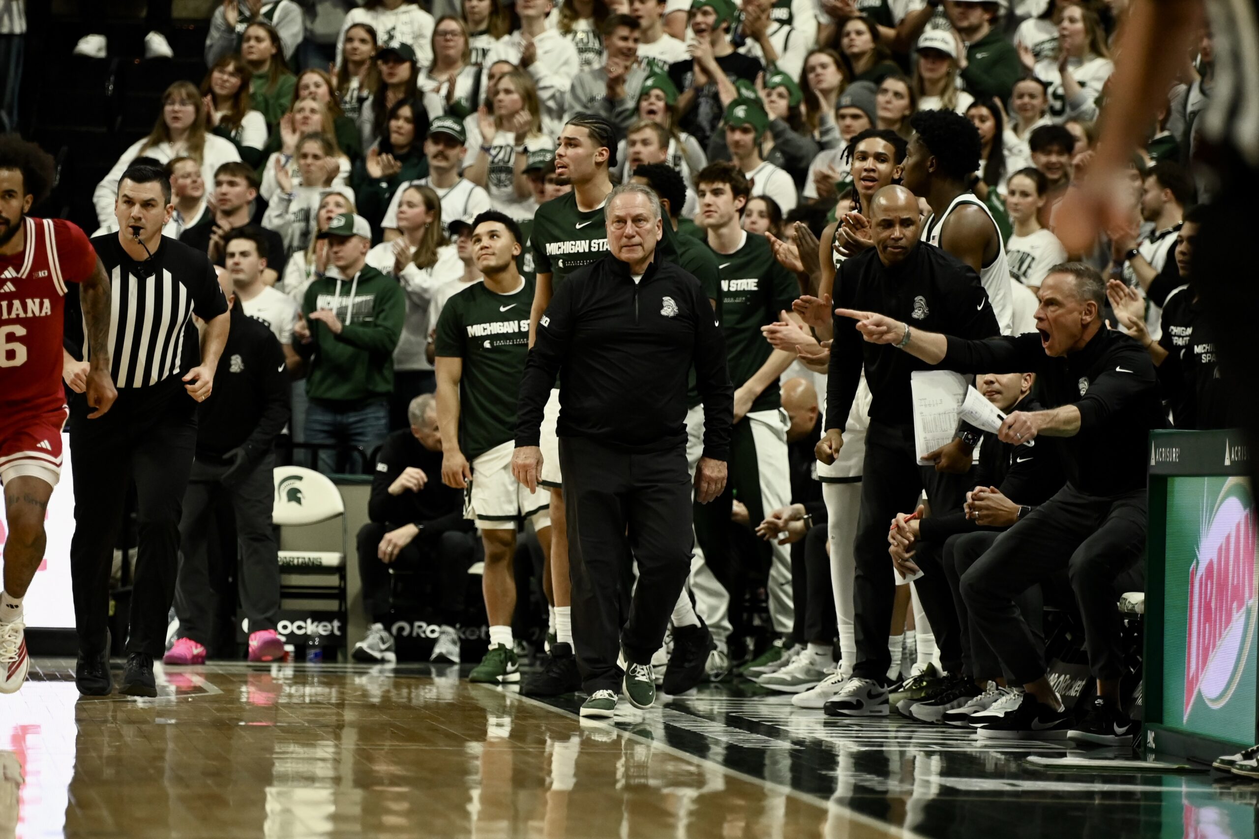 Tom Izzo walks towards his bench against Indiana.