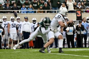 Makhi Frazier is tackled during Michigan State football’s loss to Penn State.